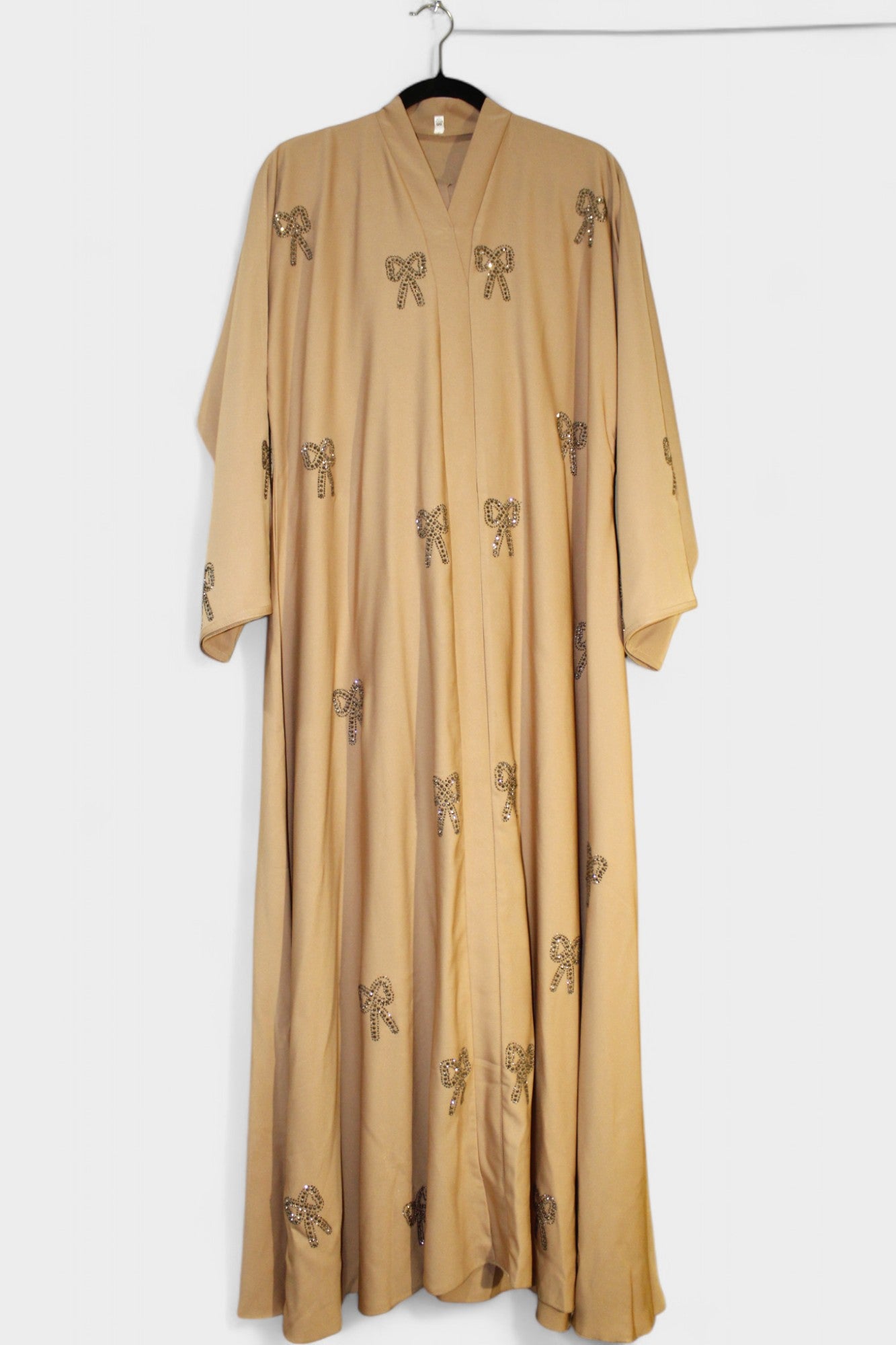 Elevate your wardrobe with this elegant tan abaya featuring delicate bow accents. Its soft, neutral shade complements any style, while the charming bows add a touch of feminine grace. Perfect for both everyday wear and special occasions, this abaya combines modesty with subtle sophistication to enhance your look effortlessly.