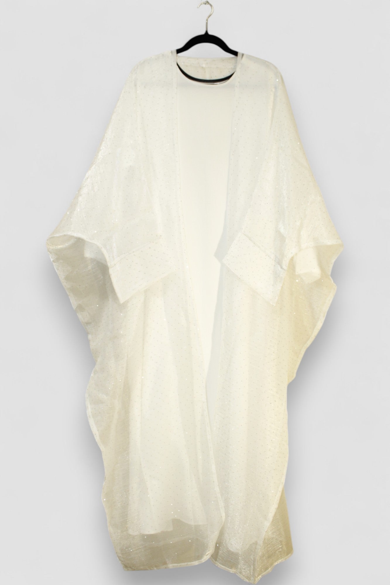 Elevate your style with the ANWAAR white 3-piece abaya, designed to bring sparkle to every occasion. Its shimmering details add a touch of elegance, making it ideal for fun and festive events. Experience comfort and grace while turning heads effortlessly in this stunning ensemble.
