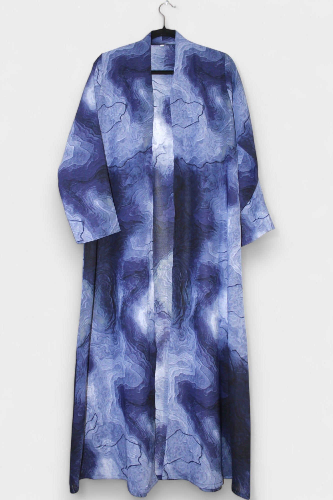 Embrace the striking elegance of ASRA, an abaya inspired by the vibrant hues of stormy seas and flowing ocean waves. Its rich blend of blue and purple creates a captivating look that radiates beauty and movement. Perfect for those who wish to stand out with a graceful yet bold style, ASRA combines vibrant color with comfortable design to elevate your wardrobe effortlessly.