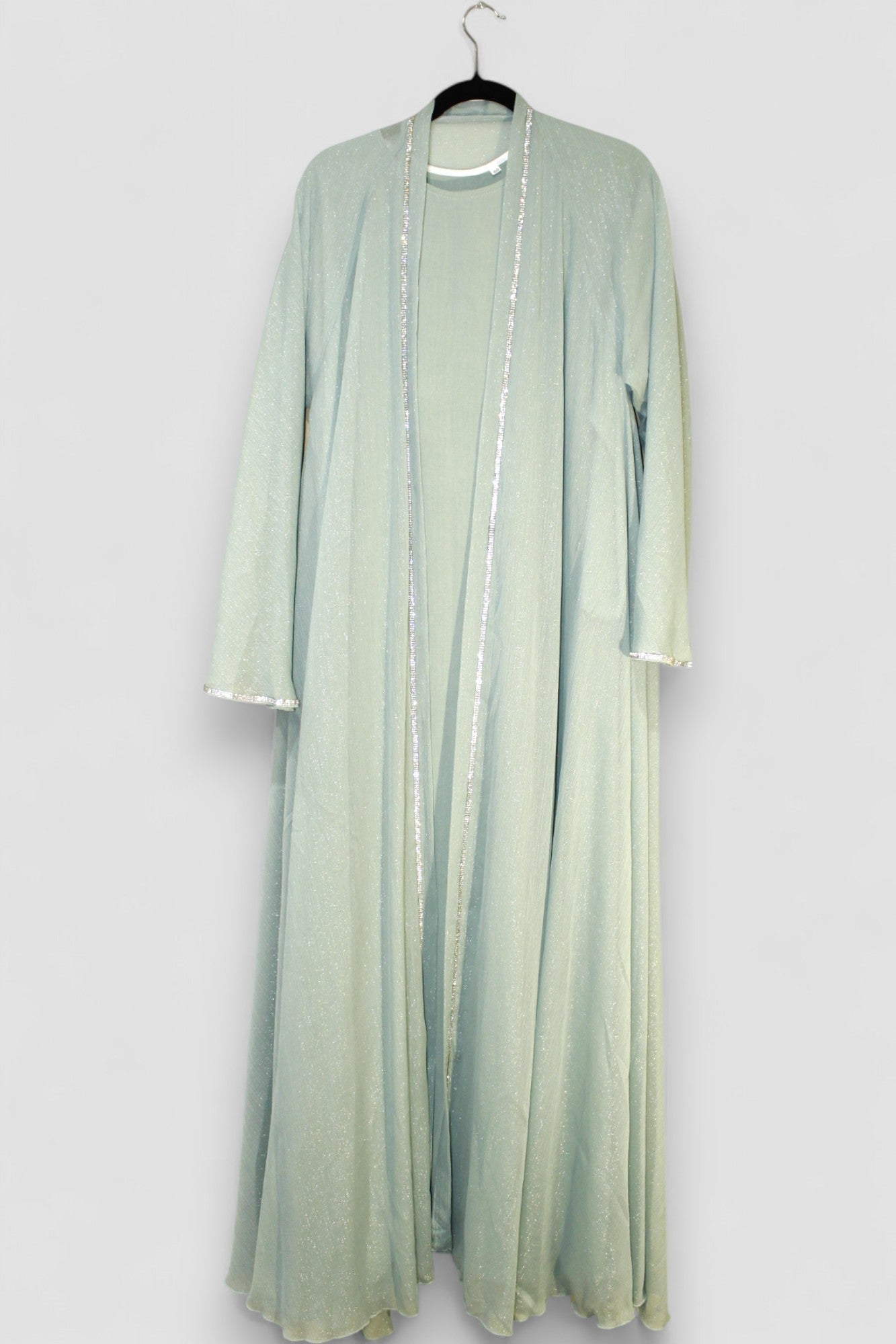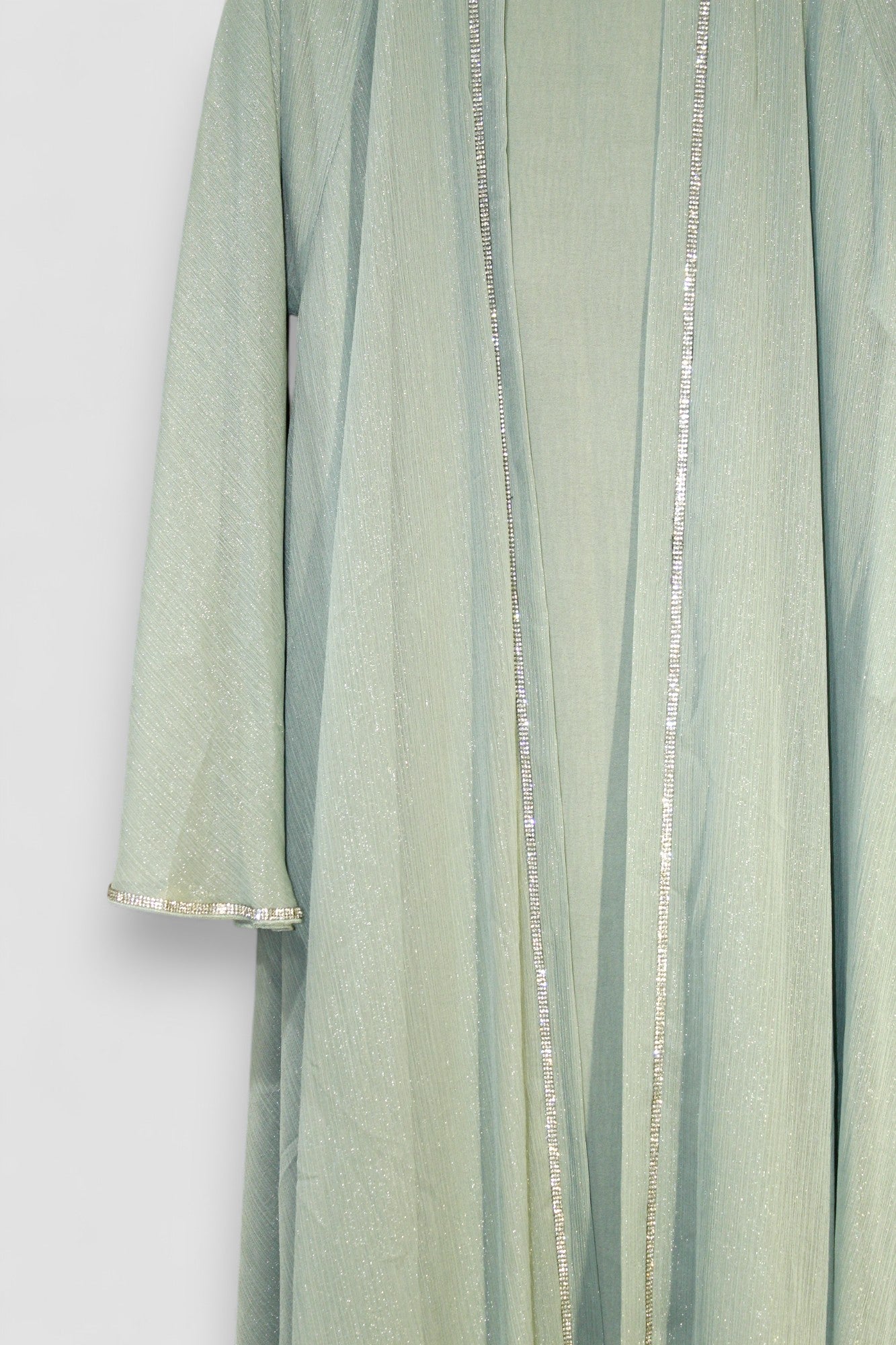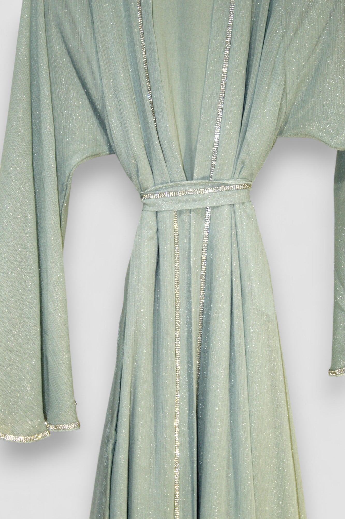 Elevate your evening style with the HAYAT abaya set. This exquisite three-piece ensemble features a gorgeous, shiny fabric that catches the light beautifully, making it the perfect choice for going out. Designed to combine elegance with comfort, HAYAT ensures you stand out effortlessly at any occasion.