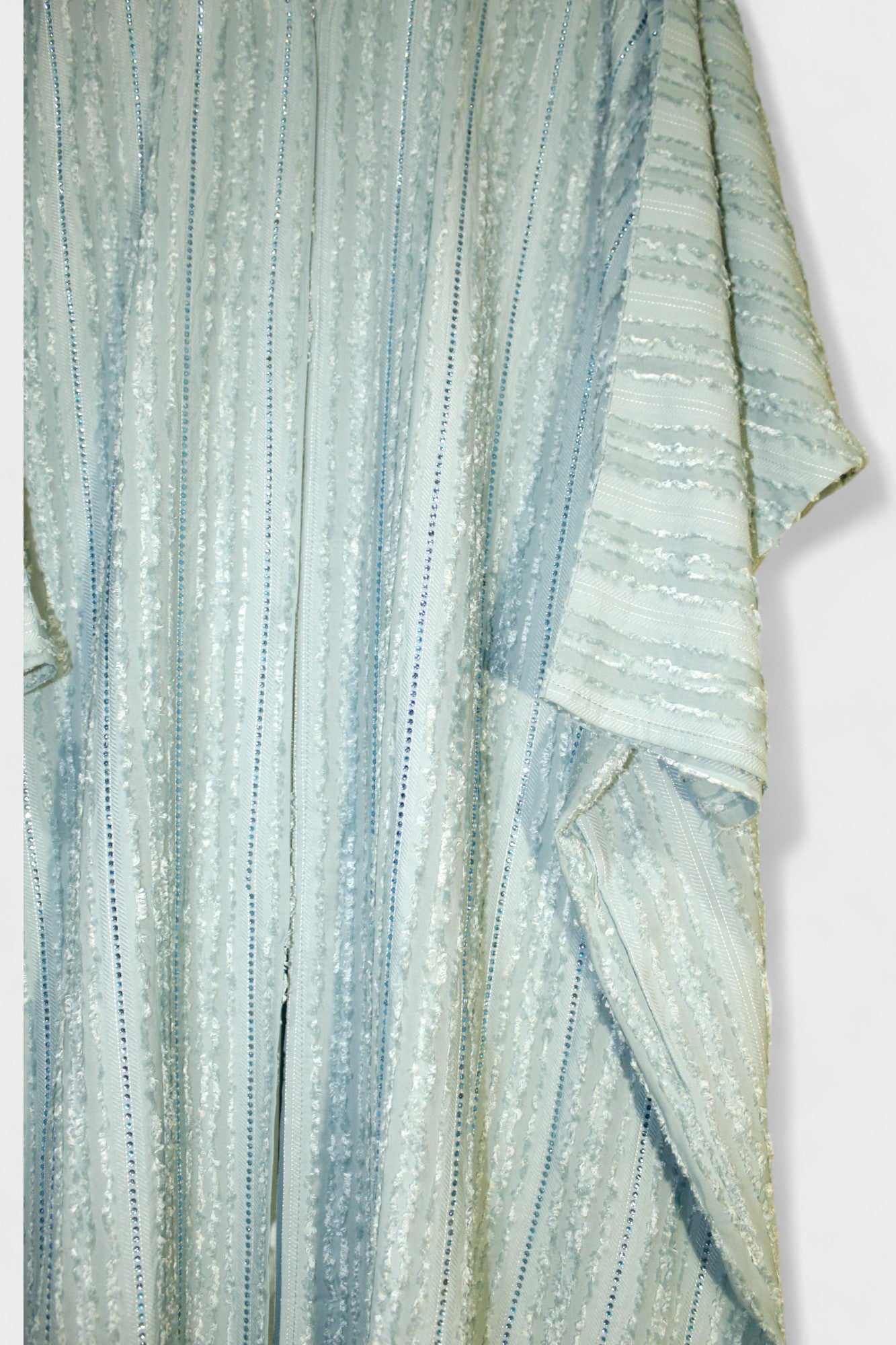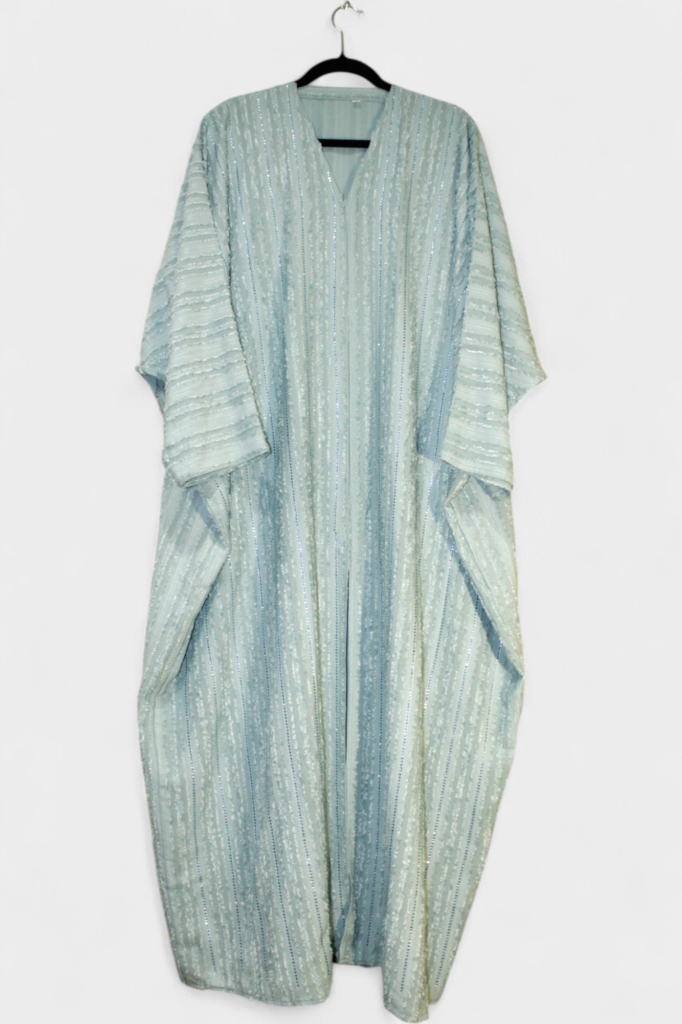 Elevate your wardrobe with this stunning turquoise sparkly abaya, designed to dazzle at every occasion. Its shimmering fabric catches the light beautifully, adding a touch of elegance and sophistication. Perfect for both special events and stylish everyday wear, this abaya combines comfort with eye-catching glamour, ensuring you stand out with grace wherever you go. comes with hijab.
