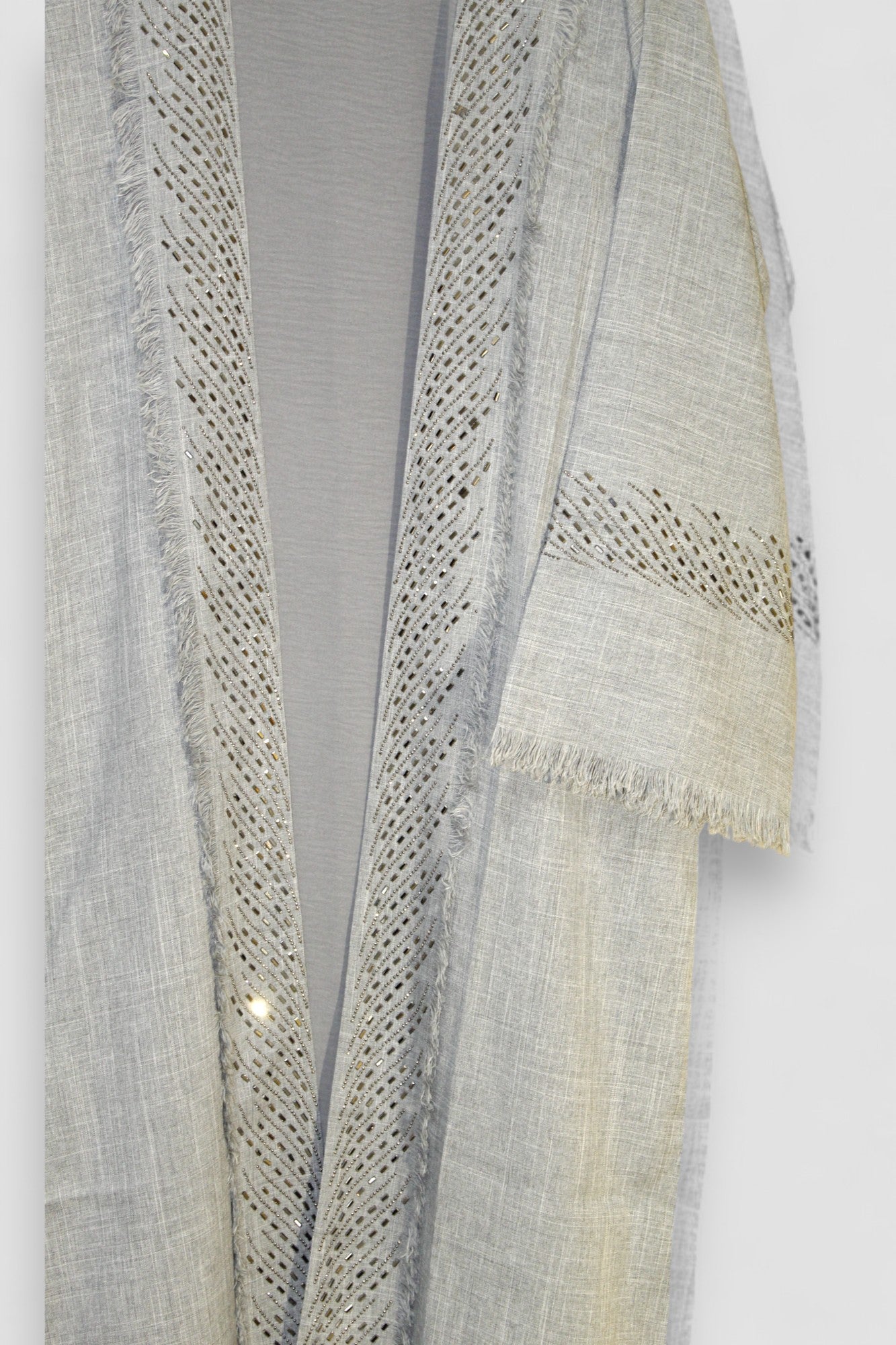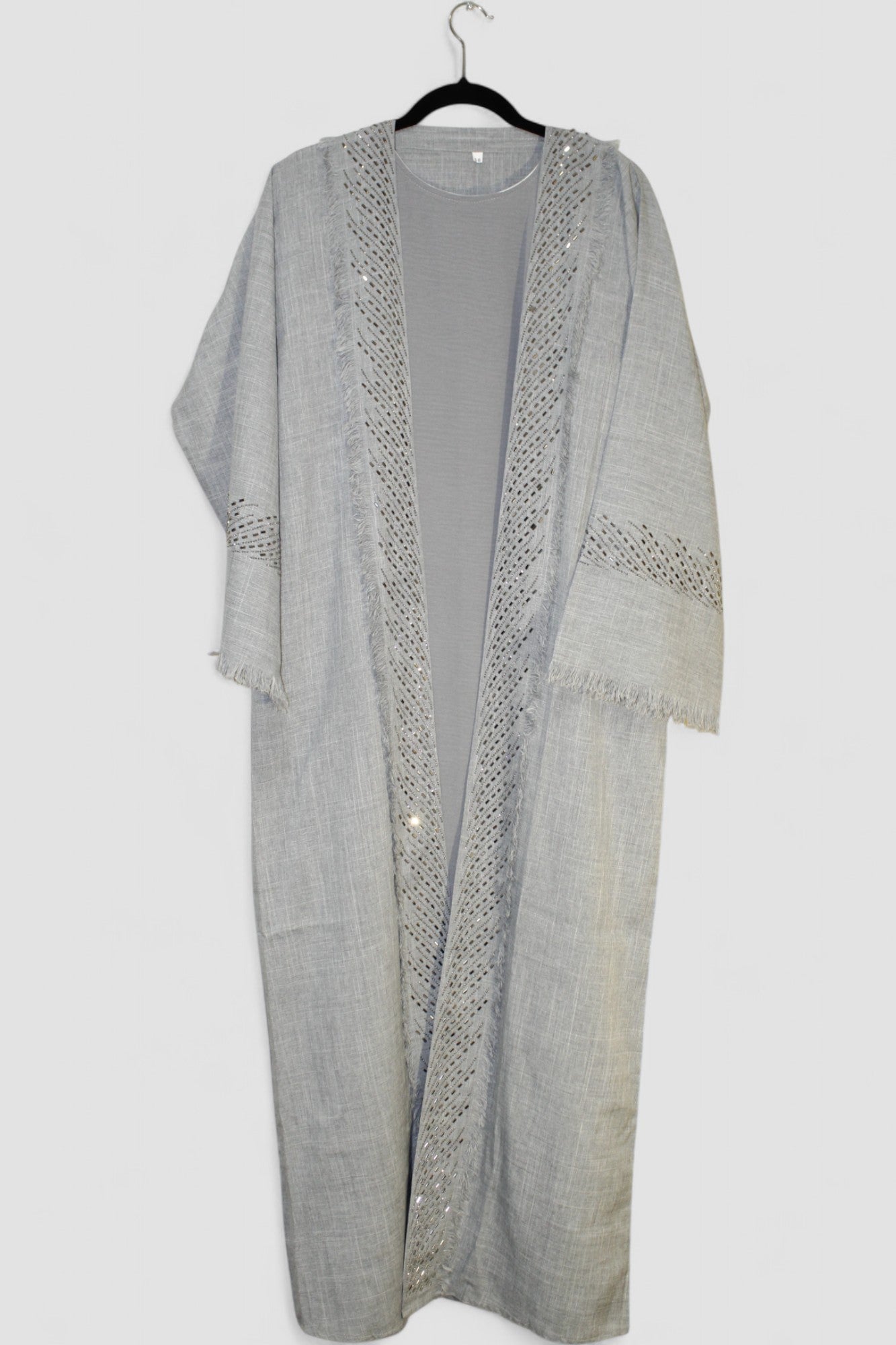Elevate your modest wardrobe with the NAJM three-piece abaya set. Featuring a sophisticated gray fabric adorned with subtle sparkles, this ensemble offers a unique, elegant look. The set includes a coordinating hijab, completing your outfit with effortless style and grace. Perfect for special occasions or everyday wear, NAJM combines comfort and charm in one stunning package.