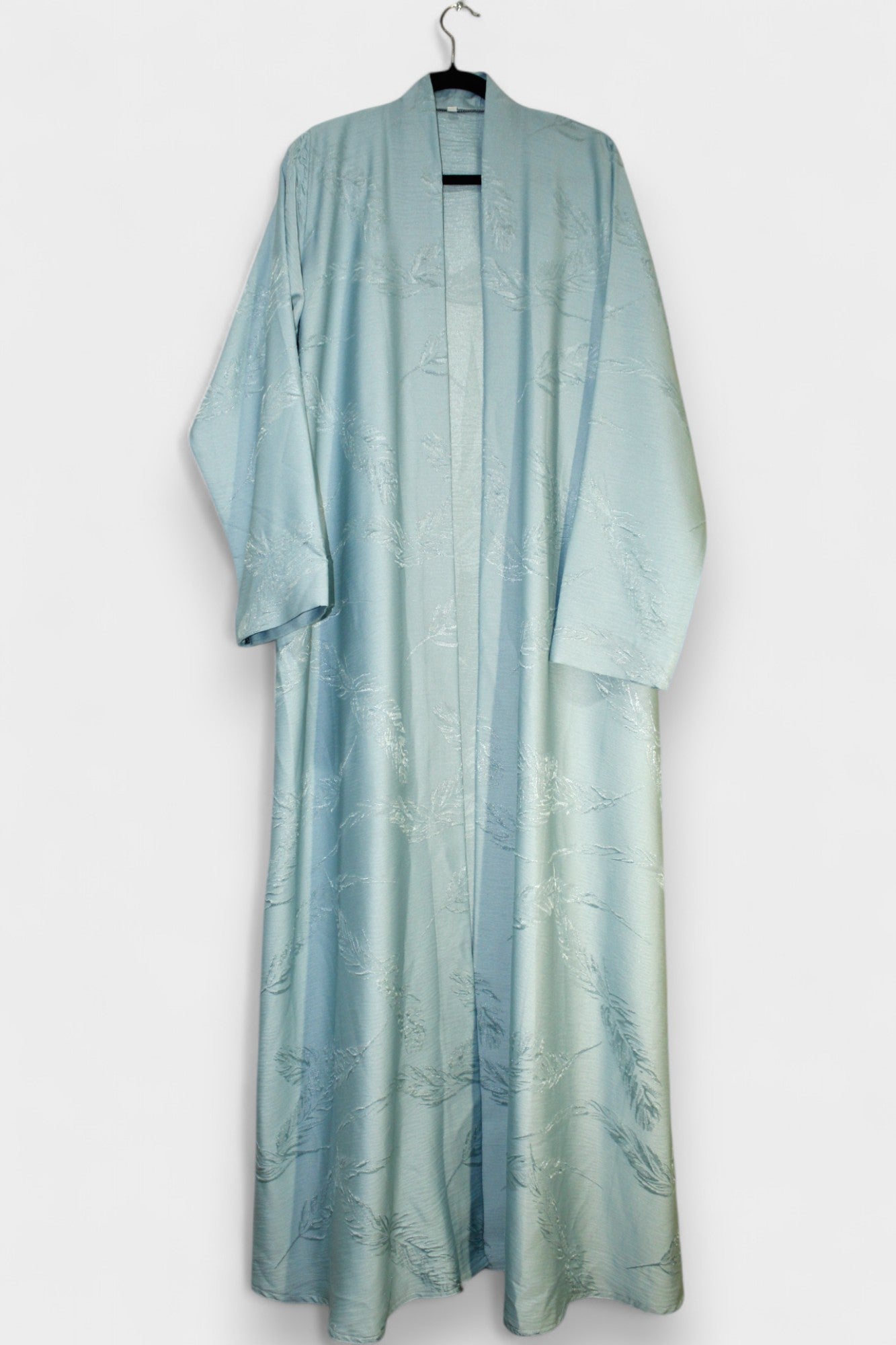 Discover the elegance of the NOOR abaya in a warm tan shade and light baby blue, adorned with exquisite detailing that enhances its timeless appeal. Its refined design offers both comfort and modest sophistication, making it a versatile addition to your wardrobe for any occasion. Embrace a graceful look that effortlessly combines style and tradition.