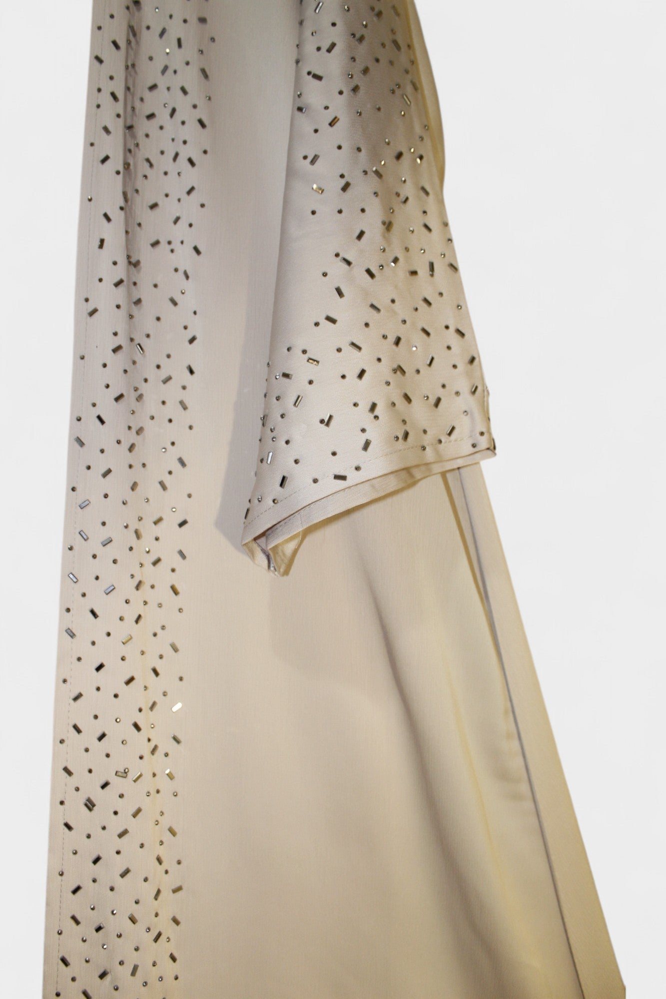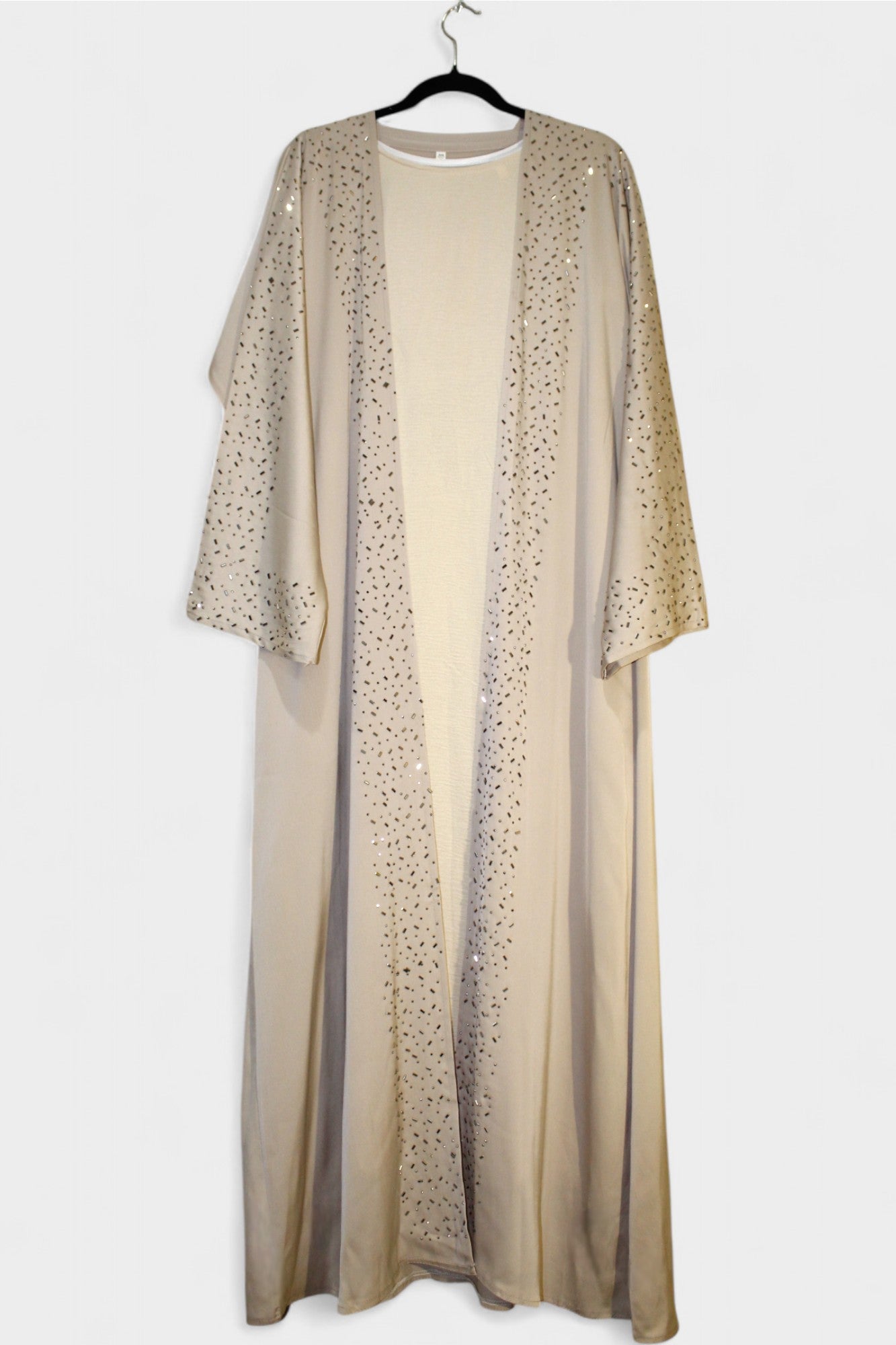 Elevate your modest wardrobe with this stunning 3-piece sparkly minimalistic abaya set. Designed for elegance and comfort, it includes a beautifully crafted abaya, a matching hijab, and a belt to secure the underpiece perfectly. The subtle sparkle adds a touch of glamour without overwhelming your look, making it ideal for both everyday wear and special occasions. Embrace simplicity with a refined shine that enhances your natural beauty effortlessly.